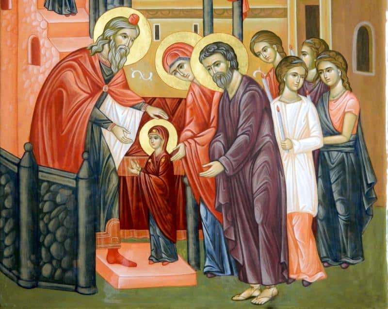 По церковному преданию, первые годы жизни Пресвятой Богородицы прошли в тихом и благочестивом доме её родителей — праведных Иоакима и Анны в Назарете. Когда Марии исполнилось три года, родители исполнили свой обет, данный Господу: они решили посвятить свою дочь служению Богу, доверив Её жизнь высшему духовному предназначению.