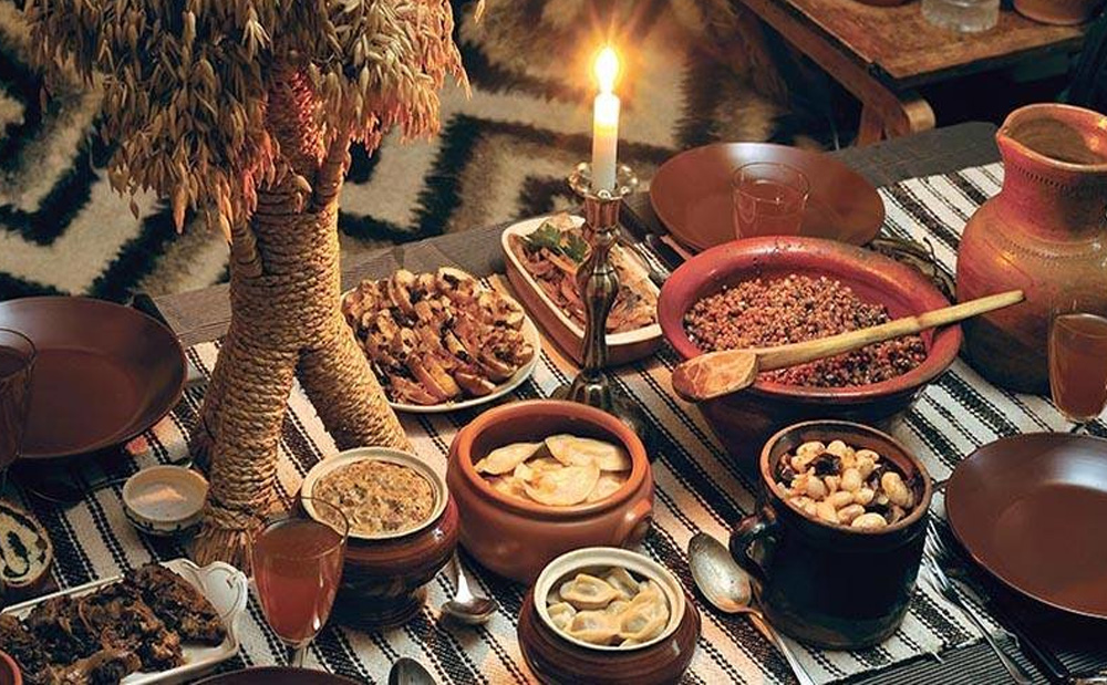 Хозяйки к праздничному столу готовили 12 постных блюд. С восходом первой звезды на небе, христиане садились за стол. Сочельник было принято отмечать всей семьей. Согласно поверьям, если один из членов семьи по какой-либо причине отсутствовал, то его ждал сложный год.