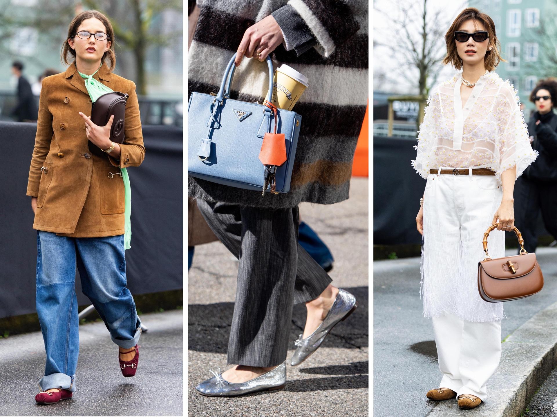 Возвращение стиля «балет-кор» невозможно представить без мягких атласных балеток. Они универсальны и легко комбинируются как с юбками, так и с джинсами.