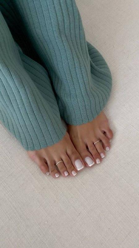 Минимализм, который всегда в моде. Полупрозрачный молочный оттенок подчеркивает загар, делает ножки визуально ухоженными, а френч в молочной гамме — элегантный и универсальный выбор для любой пары босоножек.