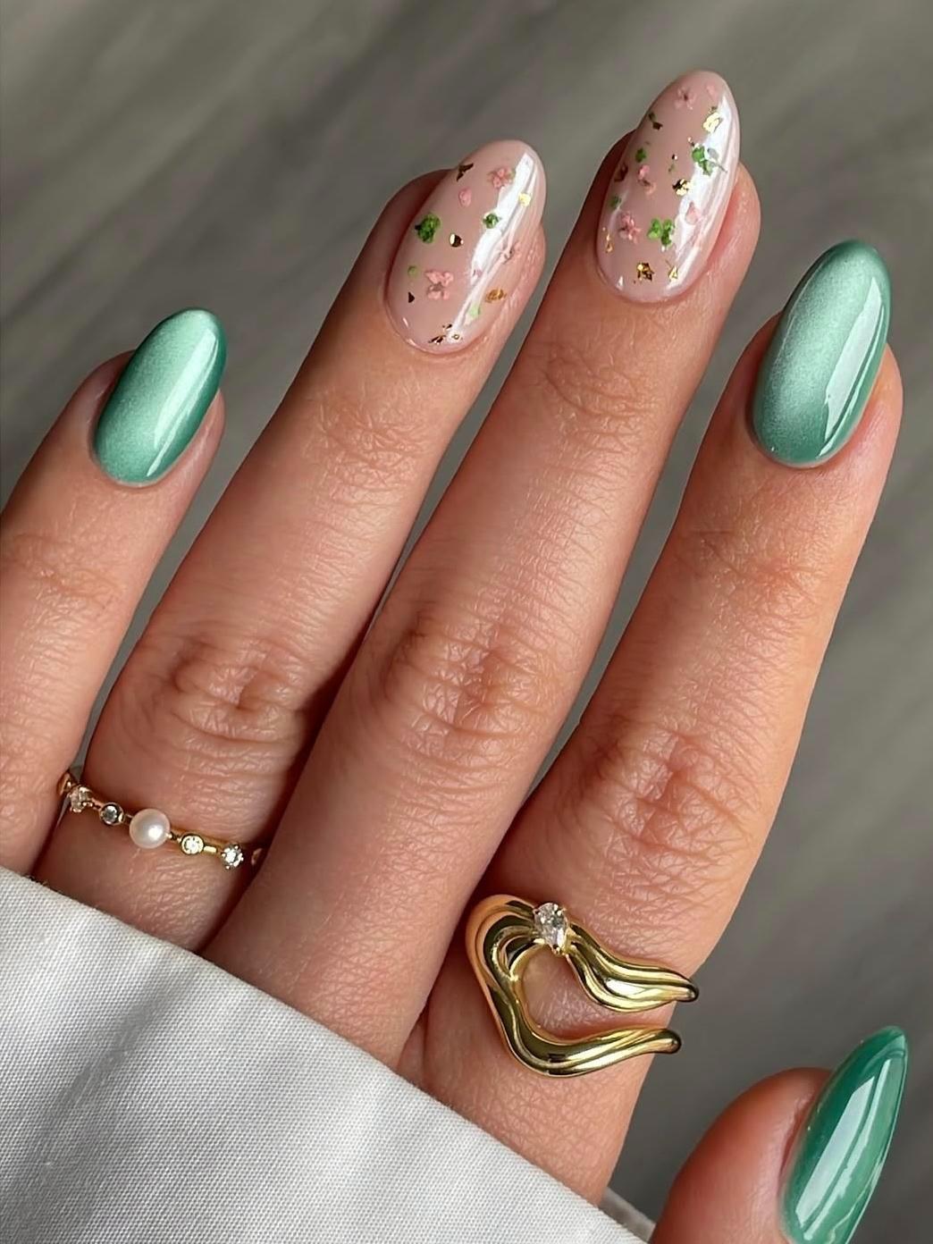 Золотые акценты — символ достатка, щедрости и уверенности. Добавьте к ним шиммер, чтобы усилить эффект: мерцающие частички ассоциируются с движением денег и удачи. Такой дизайн хорош для деловых встреч, запуска проектов и поиска новых источников дохода.