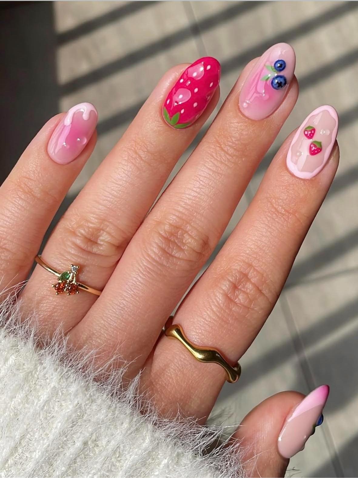 Оттенки малины, клубники, вишни — это про чувственность, харизму и страсть. Они активируют внутренний магнетизм и привлекают внимание противоположного пола. Такой маникюр особенно уместен, если вы хотите ярких эмоций и романтических встреч. А летом — это как раз то, что нужно!