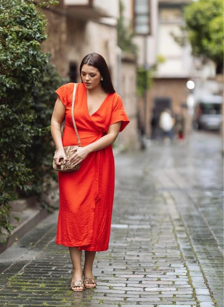 Это проверенная классика, которая «работает» почти на любой фигуре. Запах формирует выразительную линию декольте, акцентирует талию и помогает создать желанный силуэт «песочные часы». Особенно выигрышно смотрится с мягкими драпировками в районе живота — не утягивает, а гармонично обрамляет формы.