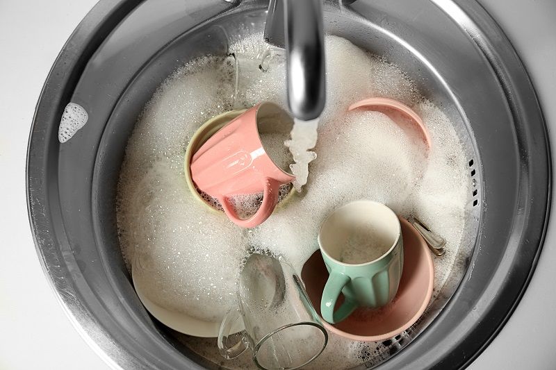 - Не замачивайте сильно жирную посуду без предварительной очистки — жир может быстро испортить мыльную воду.