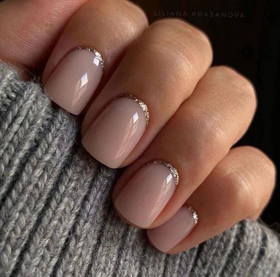 Выбирайте лаконичный стиль: нюд с деликатным золотистым шиммером и символами в виде тонких линий или точек. Такой маникюр помогает сосредоточиться на задачах, планах и достижении финансовых целей.