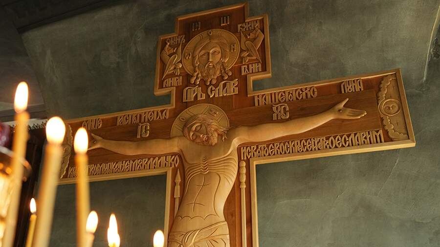- Посетите храм. В центре богослужения — поклонение Кресту, установленному в храме.