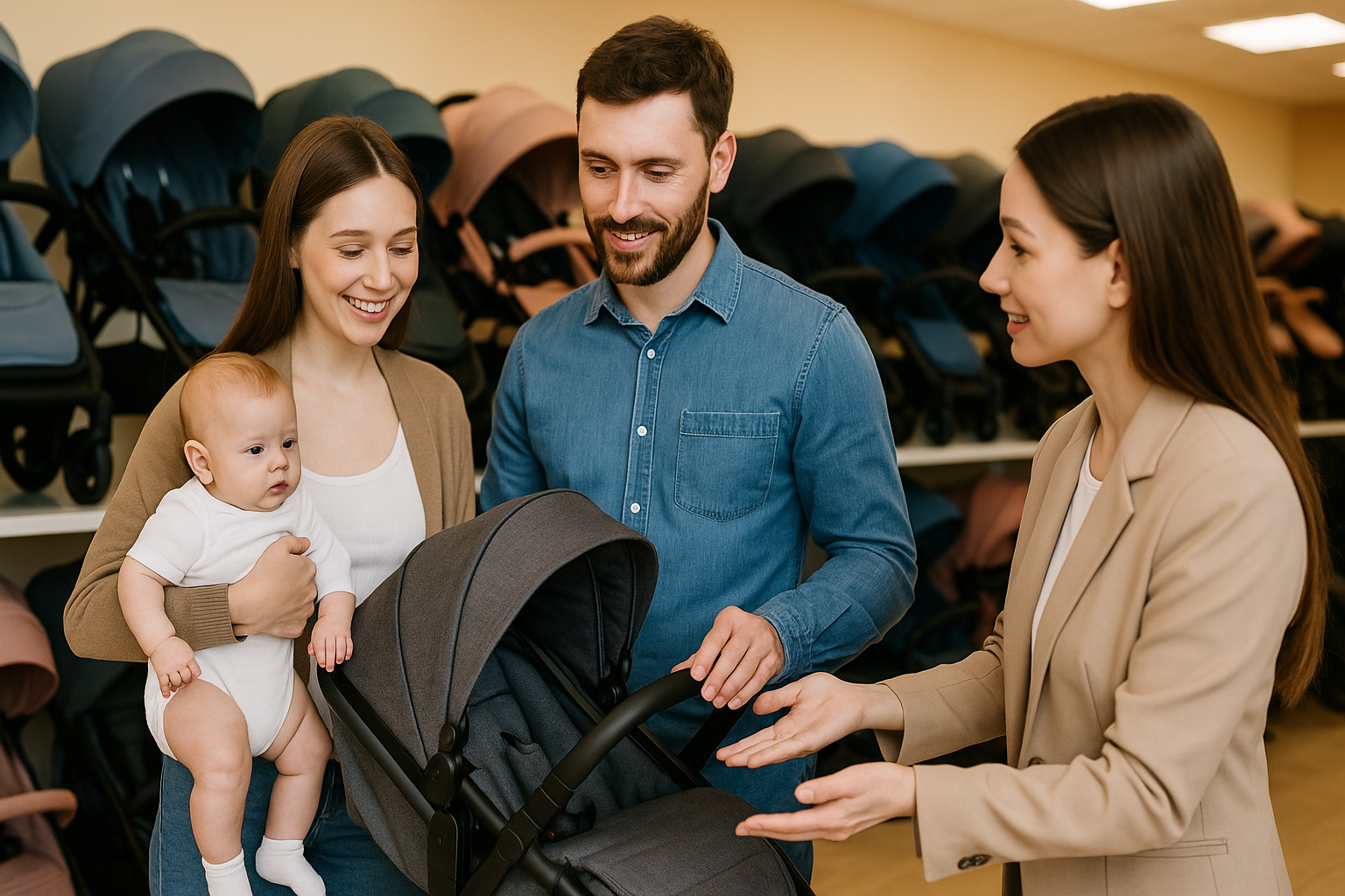 - Уточните сервис и гарантию, сохраните чек. Оформите покупку и настройте ремни под рост ребёнка.