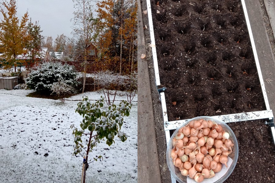 Севок нужно посадить за 2 недели до заморозков, чтобы он успел укорениться, но не дал пера.