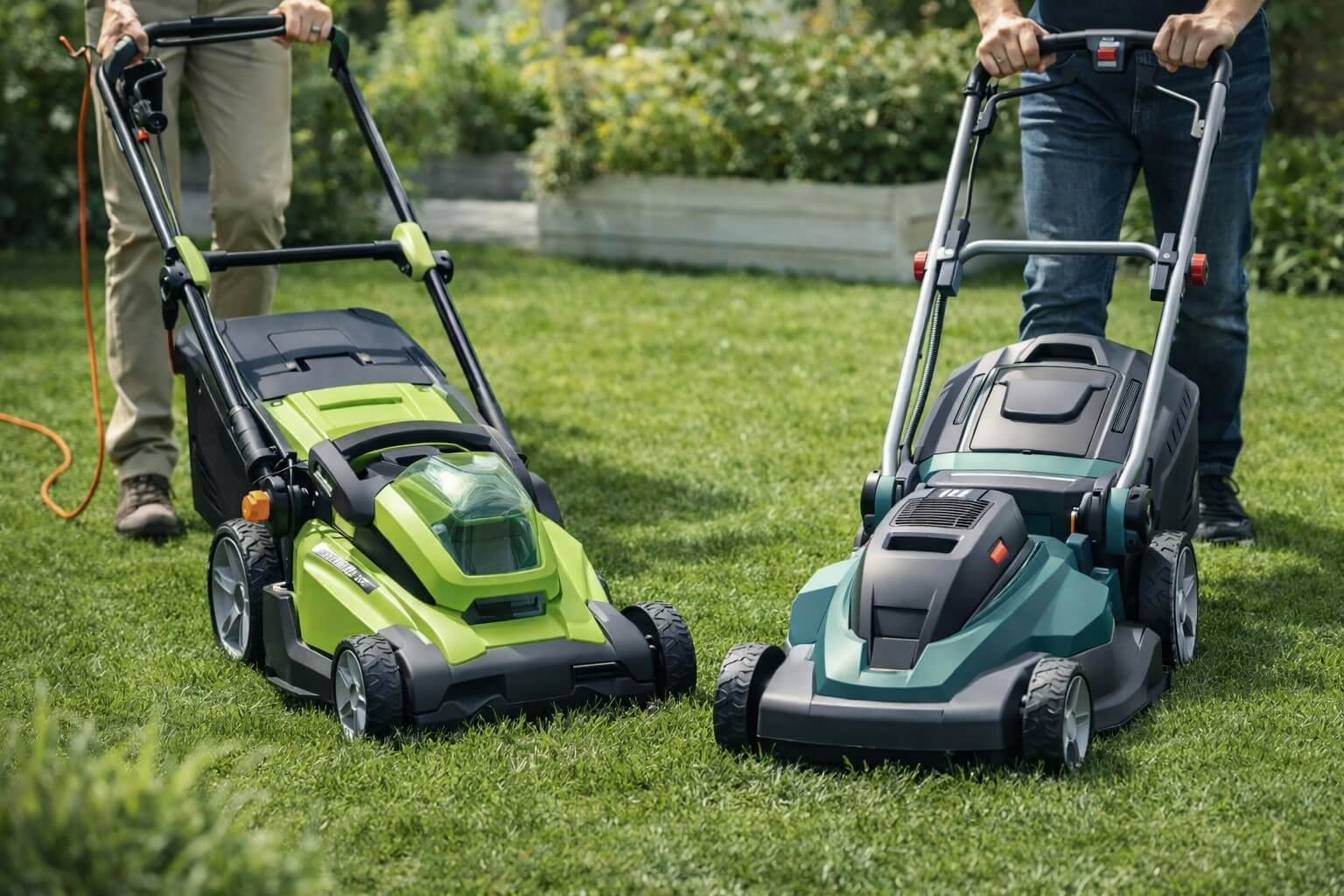Современный рынок предлагает два основных типа электрических газонокосилок: проводные и аккумуляторные модели. Каждый тип имеет специфические преимущества для различных условий эксплуатации.