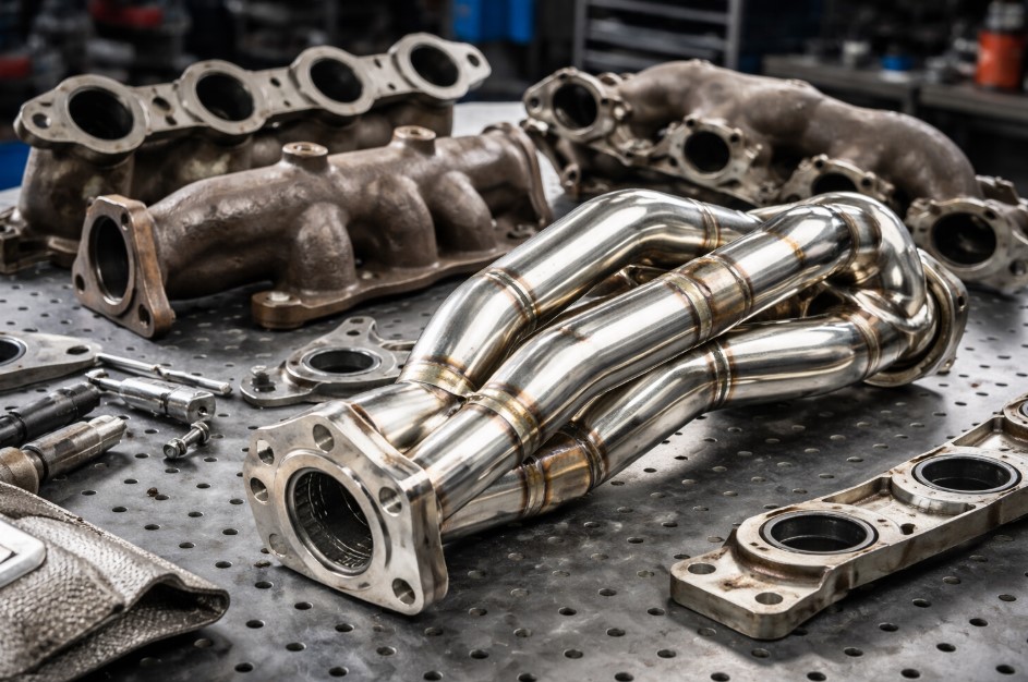 Наиболее распространены литые варианты (обычно чугун или жаропрочные сплавы) и трубчатые (сварные) решения из стали. Литые детали обычно крепче в быту: лучше держат вибрации и терпят эксплуатацию «как есть», но могут быть тяжелее и менее гибкими по форме каналов. Трубчатые конструкции легче и позволяют выстраивать геометрию так, чтобы импульсы выхлопа помогали друг другу (эффект продувки), но требуют аккуратности: плохой шов, неверная толщина стенки или слабые крепления быстро превращают красивую идею в трещину и выхлоп под капотом.