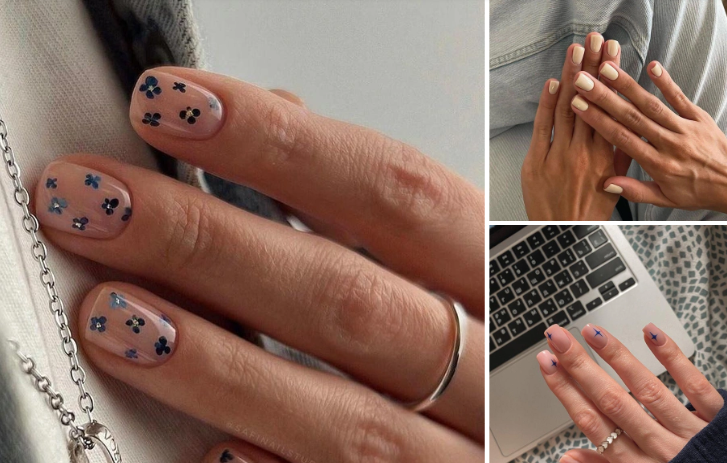 Металлические детали — тонкие линии, маленькие точки или штрих у кутикулы — добавляют чистоты и современности. Особенно эффектно серебро смотрится на нюдовых, прозрачных и молочных оттенках.