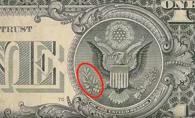 На долларовой купюре число 13 не раз встречается в рисунке доллара, начиная от пирамиды, у которой 13 ступеней, и до орла, на котором 13 звезд.