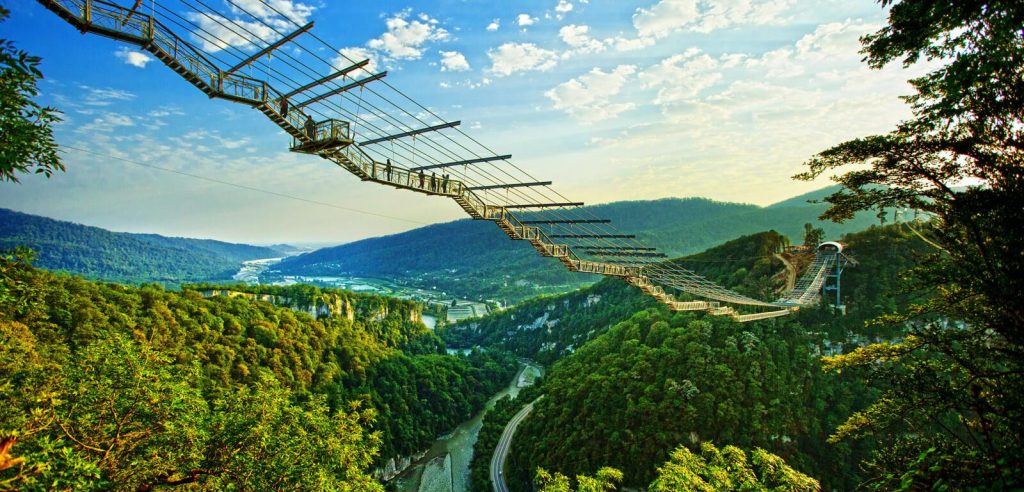 На сочинском мосту можно пощекотать нервы, не только прогуливаясь над красивейшим ущельем с видом на Кавказские горы. Здесь можно прыгнуть и с тарзанки, получив экстрим по полной программе.