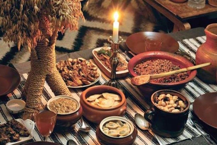 Садиться за праздничный стол необходимо только после того, как на небе взойдет первая звезда. После этого нужно зажечь свечу, помолиться и лишь потом приступать к трапезе. Полностью съедать все продукты нельзя, чтобы холодильник не был пустым весь год. До завершения праздничного ужина запрещалось выходить кому-либо из дома, чтобы не впустить в свое жилище нечисть.